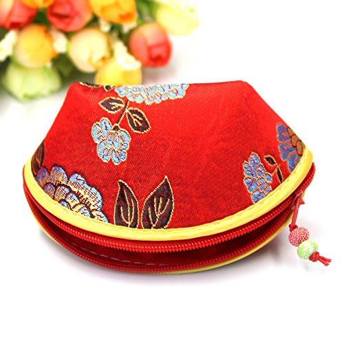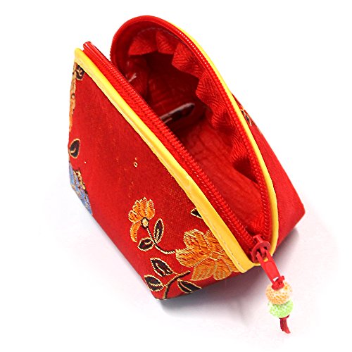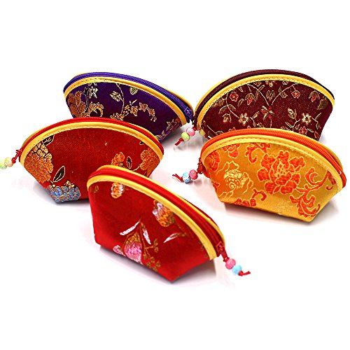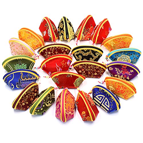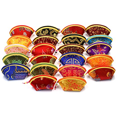MoMaek 22 pcs Silk Embroidered Brocade Zipper Jewelry Coin Pouch Wallet