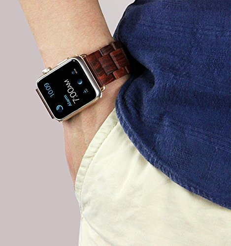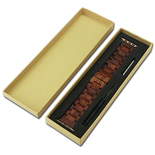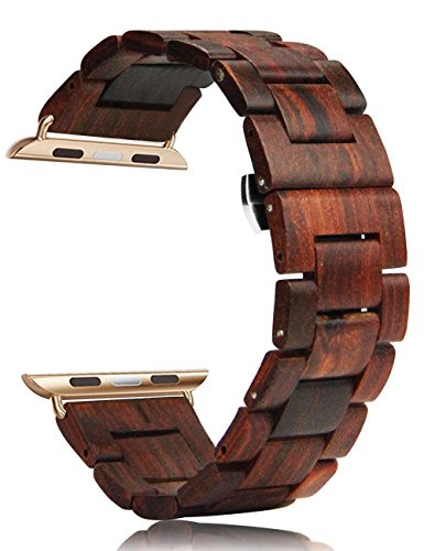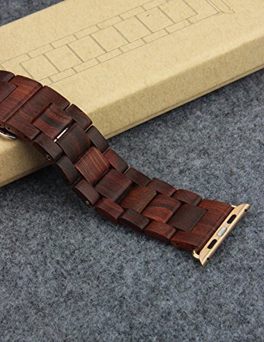 YF-WOOD Apple Watch 밴드 목제 42mm 구미에 압도적인 인기가 가지고 있는 손목시계 밴드 교환 벨트 (빨강단)