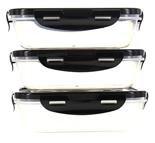 6 Pack Fitness Sure Seal Containers 20oz Clear/Black Set of 3