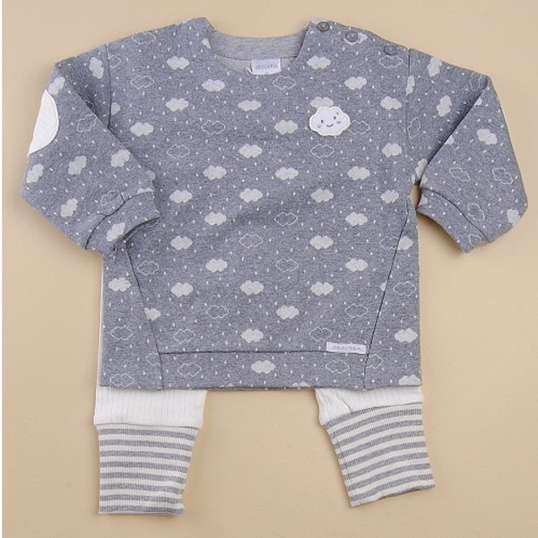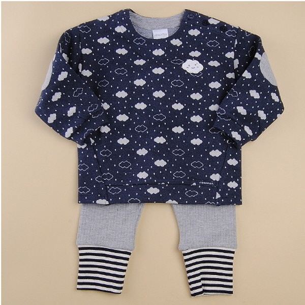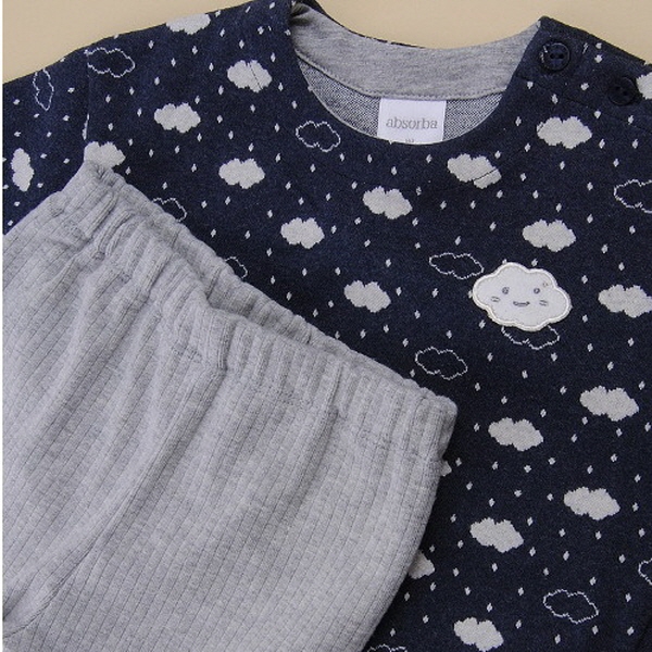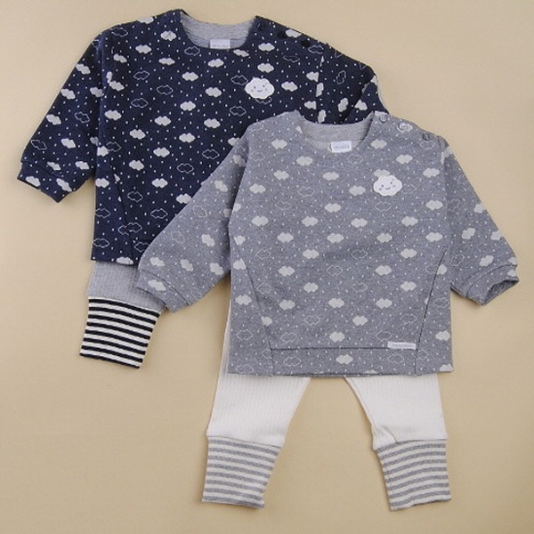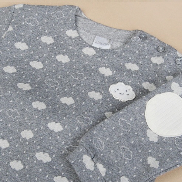 귀여운 구름 모티브의 전판 자카드 소재를 사용한 티셔츠와