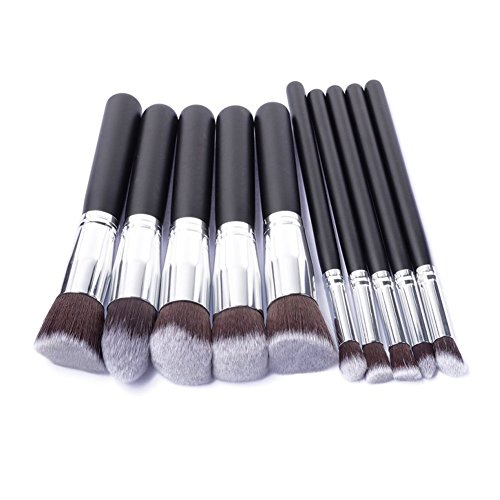AMarkUp 10 Pcs Makeup Brushes Set Premium Synthetic Kabuki Powder Foundation Blush Brushes with Storage Bag (Black-silver)