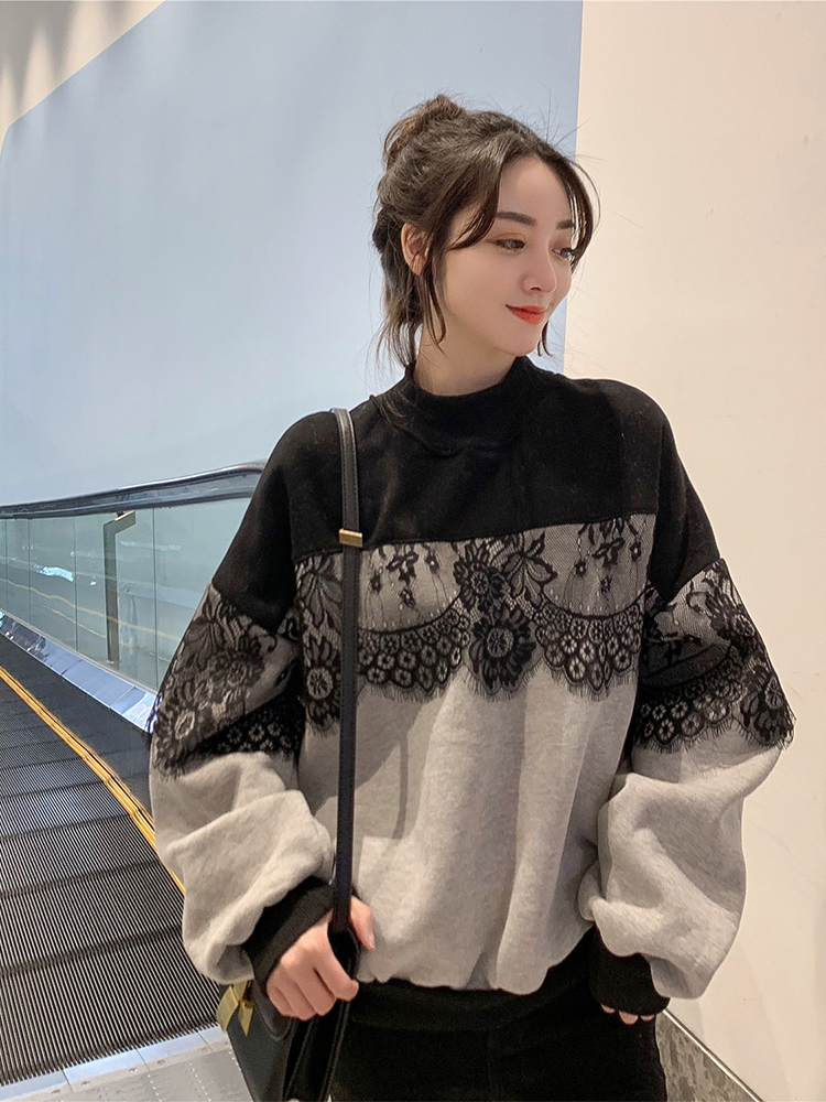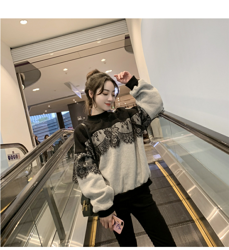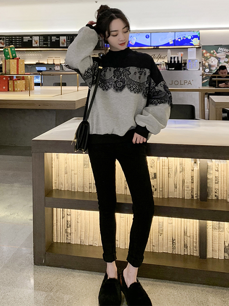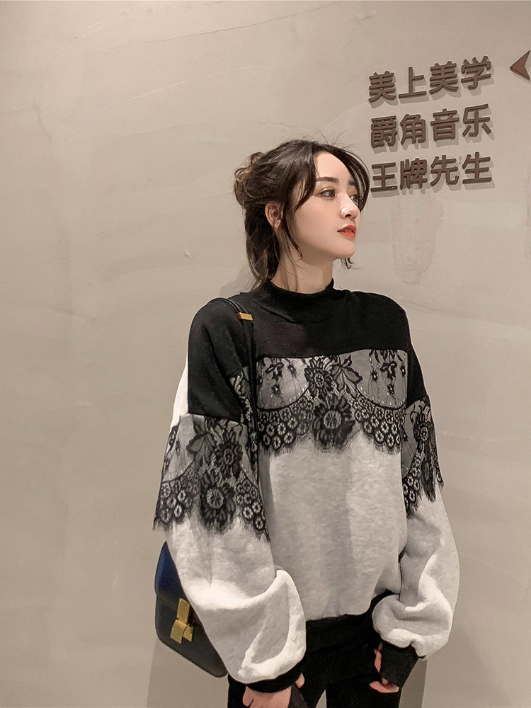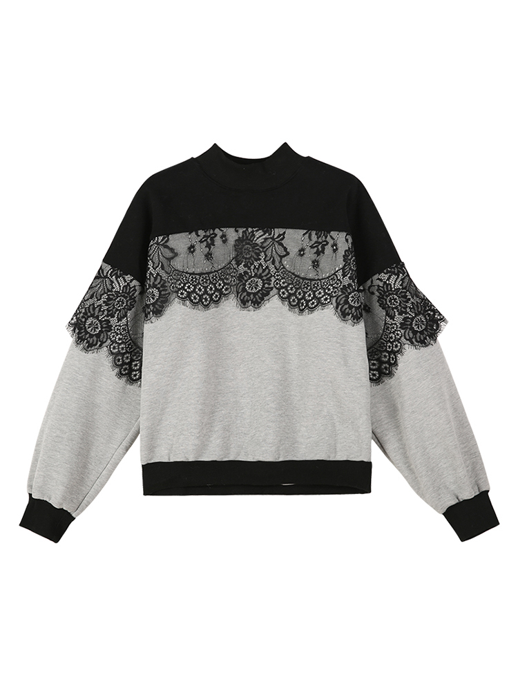 トレーナー カットソー トップス レディース 長袖 レース ゆったり☆