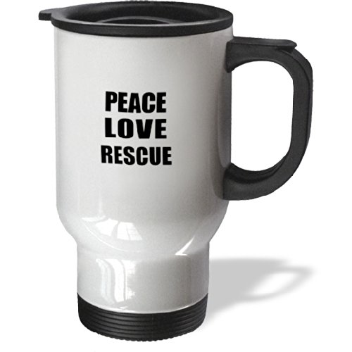 3dRose tm_184903_1 Peace Love and Rescue Things That Make Me Happy Animal Pet Rescue Travel Mug, 14-Ounce, Stainless Steel