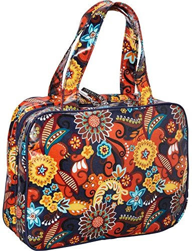 -. Feature : Zippered bag fully opens to 2 clear vinyl, zippered storage compartments. / Keeps your makeup and essentials organized and easy to locate. / Comes with a zippered matching pouch. / Hand straps. / Easily wipes clean.