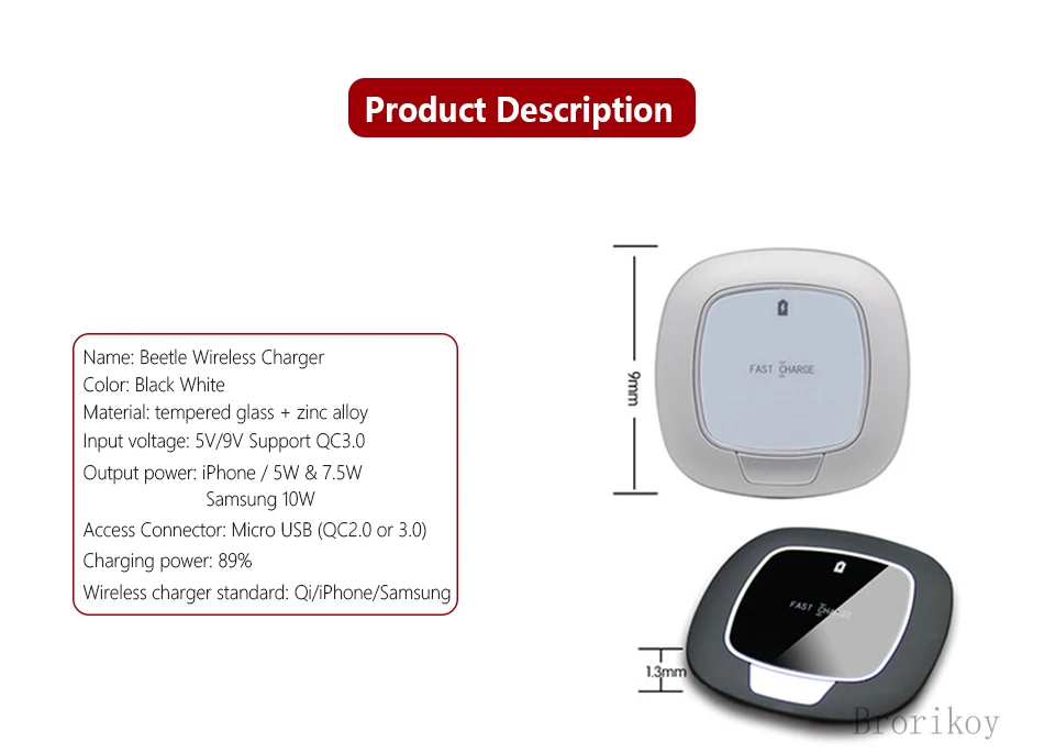 Feature:5V/1A 9V/1.5 Wireless Fast Charging
