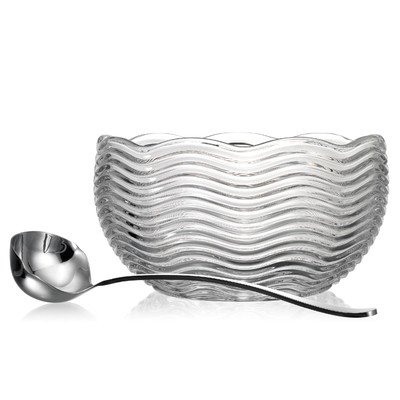 Studio : Godinger Silver Art Co Publisher : Godinger Silver Art Co Binding : Kitchen Product Description 49642 Features: -Non lead crystal. -Etched in a wavy cut. -Scalloped edges. -With ladle. Product Type: -Punch bowl. Material: -Crystal. design: -Modern. Dimensions: Overall Height - Top to Bottom: -5.91 Inches. Overall Width at Top - Side to Side: -10.83 Inches. Overall Product Weight: -10.8 Pounds. Overall Depth at Top - Front to Back: -10.83 Inches. 0