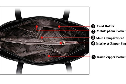 Lined interior features a backwall zippered pocket; Two frontwall slip pockets;One middle zip compartment;Exterior features a back zipper pocket;