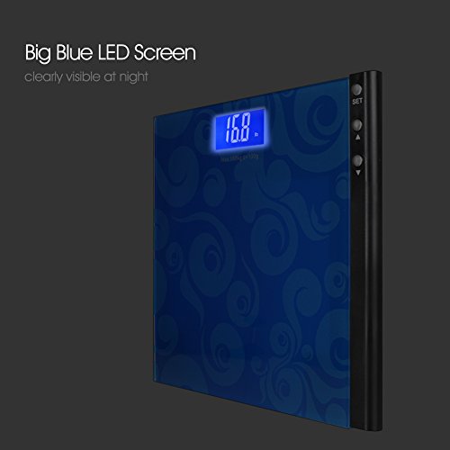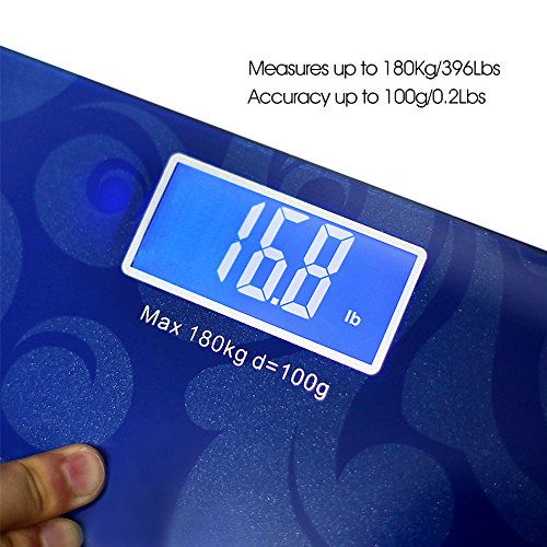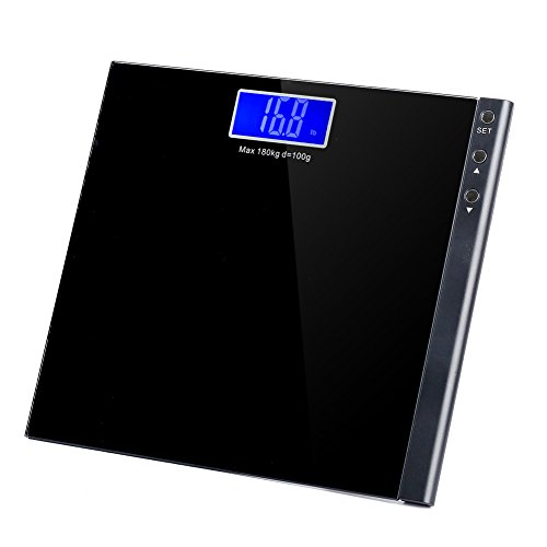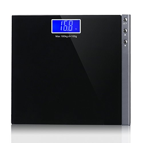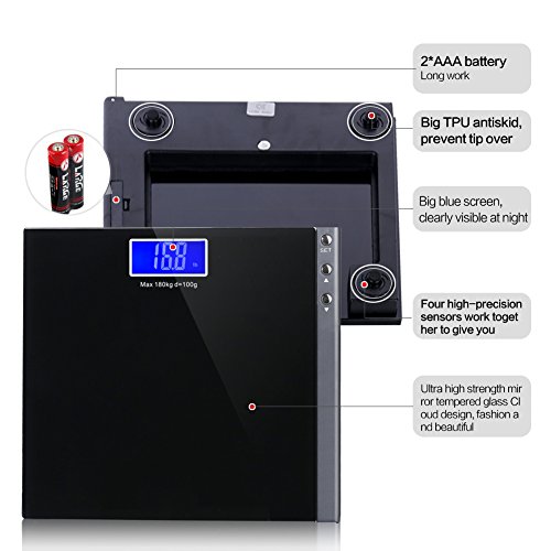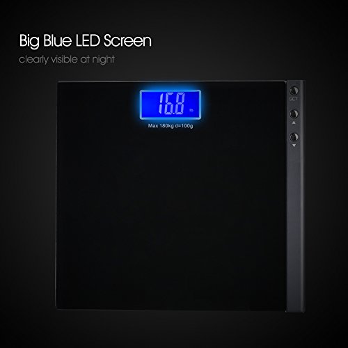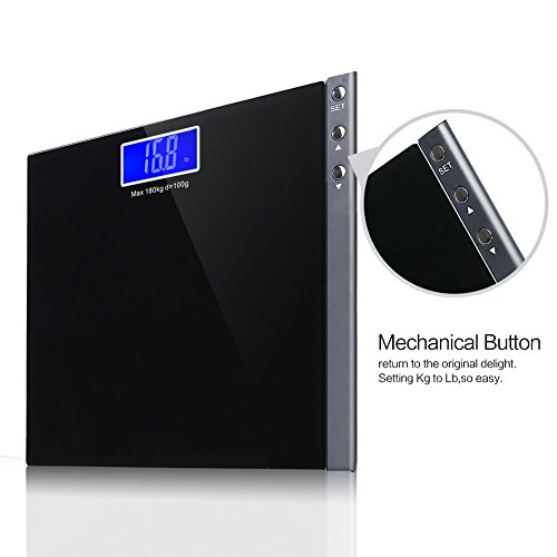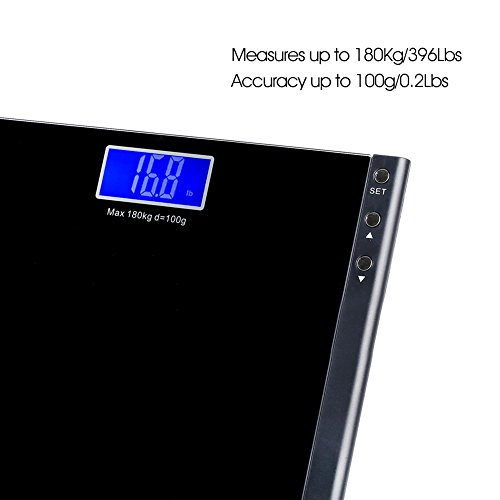 -. Title : MEINI Bathroom Scales Digital Large Blue LCD Display Step-On Technology Elegant Black 396 Pound Capacity Memory Function