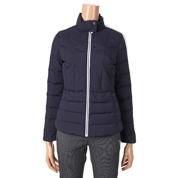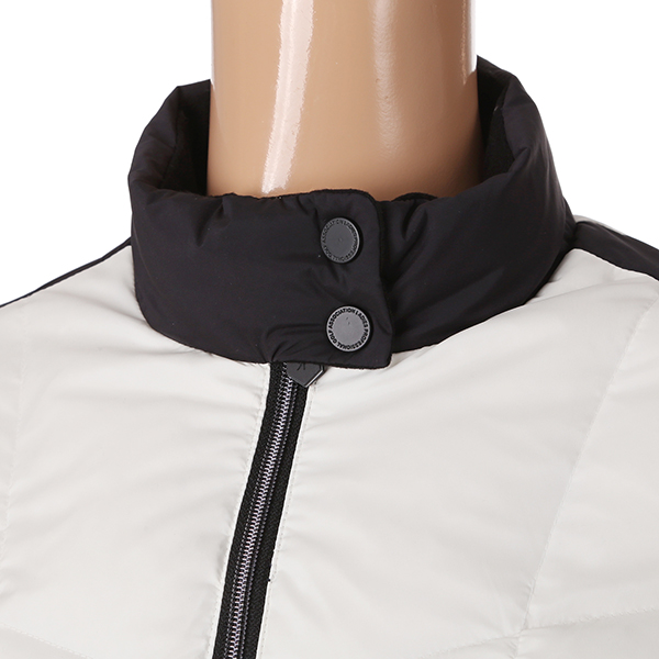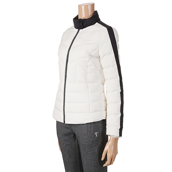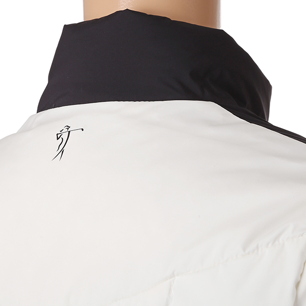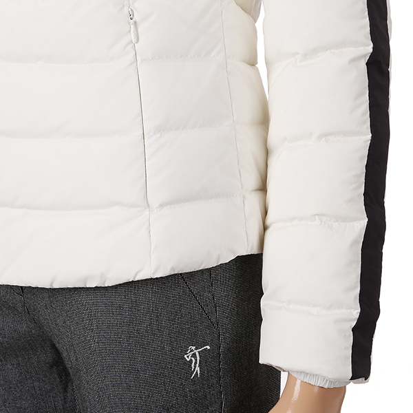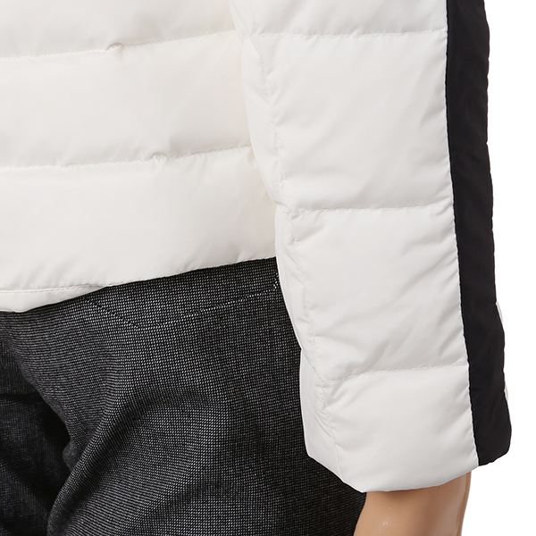 극배색 사용으로 디자인포인트를 준 구스다운 자켓.