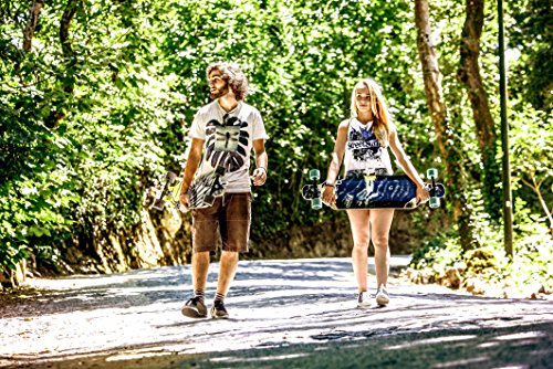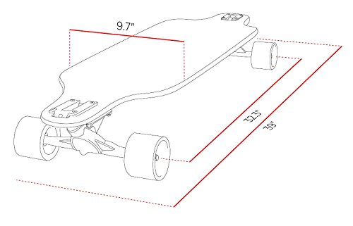 -. Feature : Dimensions: 39-Inch x 9.7-Inch / 9 ply maple deck / Concave: 0.31-Inch / Wheelbase: 32.3-Inch / Spray grip for maximum traction / Trucks: 7-Inch Polished aluminum reverse pin drop throw trucks / Wheels: 70 x 51 mm / Square lip PU wheels / ABEC 7 chrome bearing