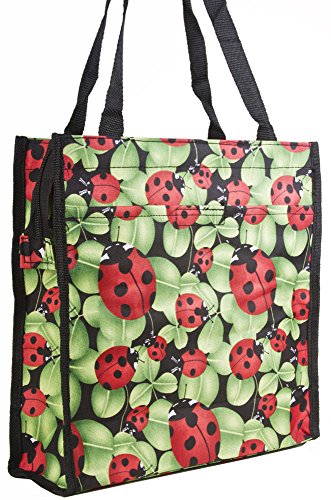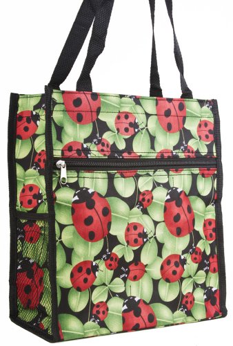 -. Brand : World Traveler -. Department : womens -. Feature : Exterior Netting Water Bottle End Pocket / Silver Pewter Hardware / Main Zipper Closure / Two Exterior Pockets, One Zippered, One Velcro Closure / Attachable Coin Purse -. ProductGroup : Apparel -. ProductTypeName : LAGE -. Title : World Traveler Ladybug Print Collection Travel Tote Bag 12-inch