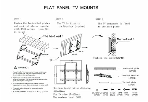-. Binding : Electronics -. Brand : Sunydeal -. Color : Black -. EAN : 5054574004020 -. Feature : This Universal TV Bracket Fits Most 17-45 Inch TV Display / Quick And Easy To Install - Bracket Comes Complete With Full Instructions And Standard Fitting Hardware (Not Includes All Size Of Screws) / Strong Steel Supports Screens Up To 79 lbs. / Cable management design- Large pass through holes for cable management / Lift and lock system- Simply lift the tv and lock in place with 2 security screws -. Label : Sunydeal -. Manufacturer : Sunydeal -. Model : LYSB015MXXDVW-ELECTRNCS -. MPN : LYSB015MXXDVW-ELECTRNCS -. PackageQuantity : 1 -. PartNumber : LYSB015MXXDVW-ELECTRNCS -. ProductGroup : Speakers -. ProductTypeName : CONSUMER_ELECTRONICS -. Publisher : Sunydeal -. Studio : Sunydeal -. Title : Sunydeal TV Wall Mount Bracket for Samsung Vizio LG TCL Sony Element Sharp AQUOS Insignia Panasonic Sceptre Emerson 19 22 26 28 30 32 37 39 40 42 43 45 inch Plasma LCD LED Smart TV