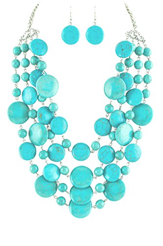 18 inch four- line layered bib teal faux-stone crackle finish round and disk-shaped acrylic bead necklace.