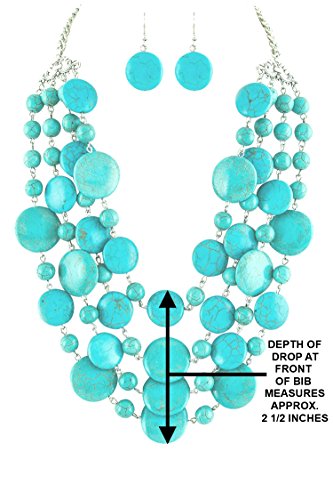 Extra chunky multistrand layered bib necklace featuring four lines of round and disk shaped crackle finish teal faux-stone acrylic beads suspended from silver-tone curb chain.The necklace measures 18 inches in length with an additional 2 inches of wearable length available via extender chain.