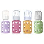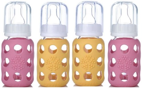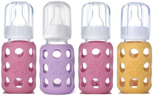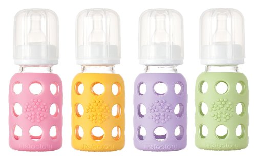 -. Binding : Baby Product -. Brand : Lifefactory -. Color : Clear -. Feature : Bright colored silicone sleeve (patent pending) helps to protect the bottle from breakage and provides a great gripping surface and tactile experience during feeding / Bottle and sleeve can be boiled or put in the dishwasher together / Bisphenol-A (BPA), phthalate, and polyvinyl chloride (PVC) free / Silicone sleeve is non-toxic and free of plastics / Silicone nipple is non-toxic and latex-free -. Label : Lifefactory -. Manufacturer : Lifefactory -. NumberOfItems : 4 -. ProductGroup : Baby Product -. ProductTypeName : BABY_PRODUCT -. Publisher : Lifefactory -. Studio : Lifefactory -. Title : Lifefactory Glass Baby Bottles 4 Pack (4 oz. in Girl Colors)