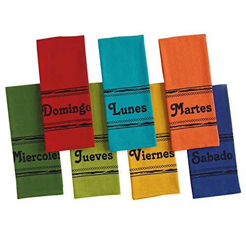 Bright Spanish Days of the Week Kitchen Dish Towel - Set of 7