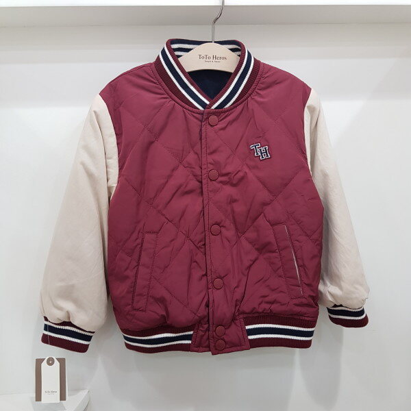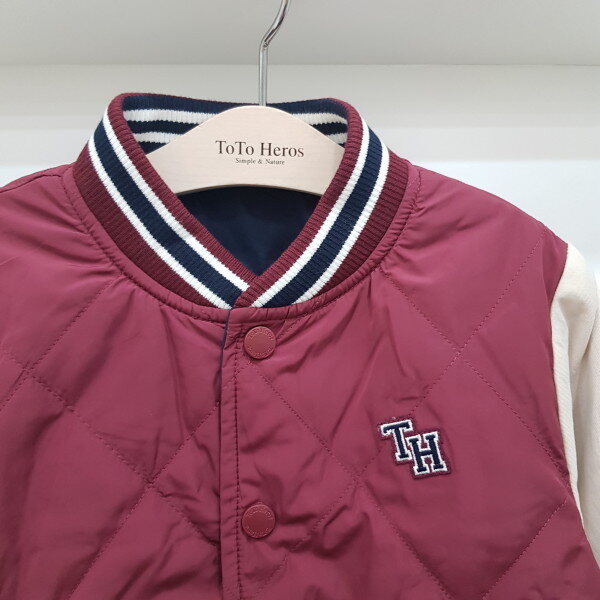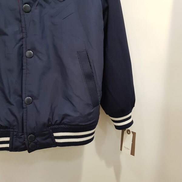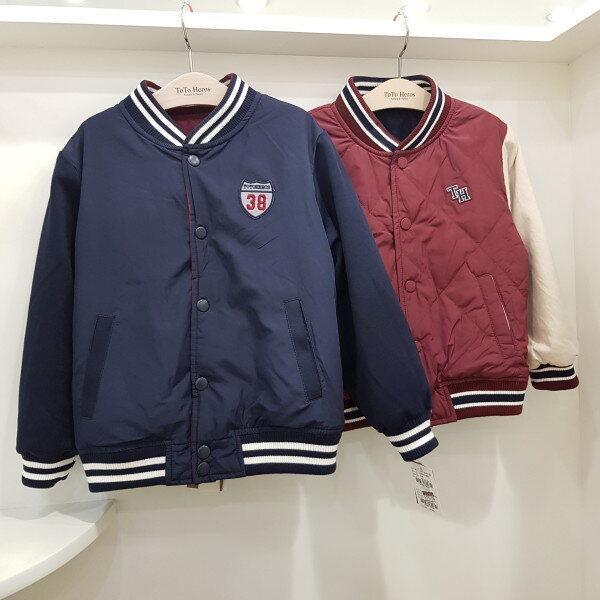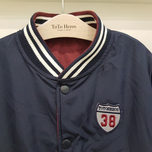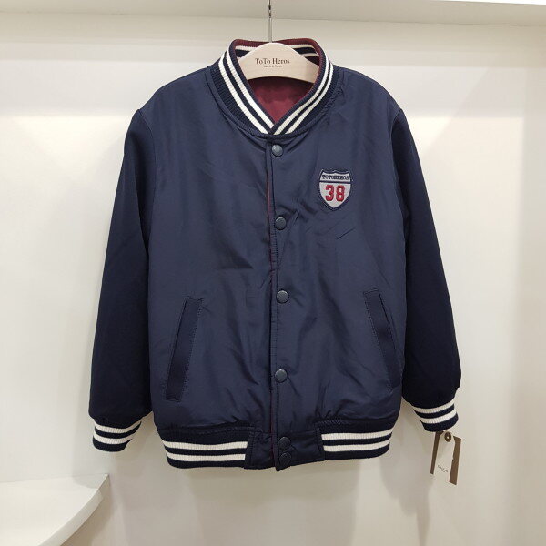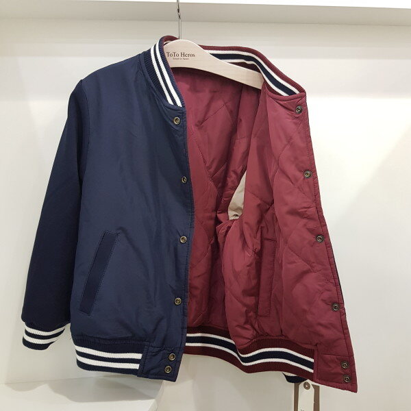 몸판 3온즈 패딩 야구 점퍼로 리버시블로 두사지 칼라 착장가능한 상품입니다. 안쪽 네이비는 배색이 없어 좀 더 깔끔하게 코디 가능한 아이템입니다-
