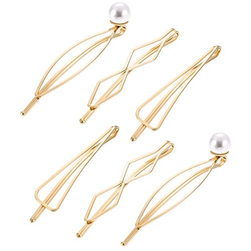 6 Pieces Geometric Metal Hairpin Hair Clip Clamps Accessories Barrettes Bobby Pin Headwear Headdress Styling Jewelry, Pearl Marquise/ Triangle Rhombus/ Infinity