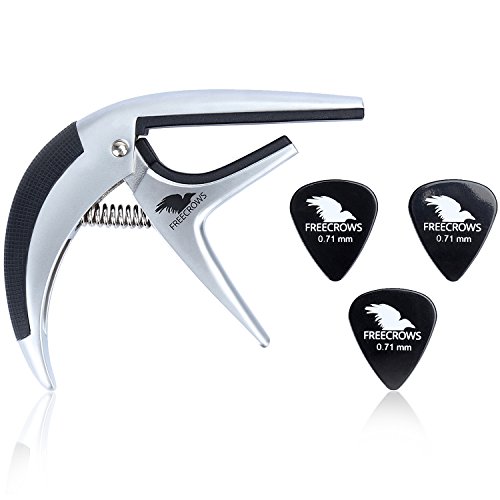 Guitar Capo Acoustic and Electric Guitars - Freecrows - Metal Quick Change silver Capos Tuner Accessory Tool for Bass Banjo Mandolin Ukulele - For 6 and 12 Strings Gothic style design No Fret Buzz
