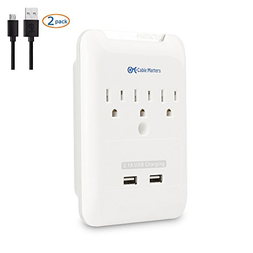 Wall mount surge protector converts any standard single gang wall outlet into a mini USB charging station for powering, protecting, and re-charging your smartphones or tablets