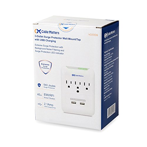 Surge suppressor with shared 2.1 amp USB ports charges two mobile devices simultaneously; Dedicated USB charging ports eliminate the need for proprietary wall adapters and re-charge faster than a computer USB port
