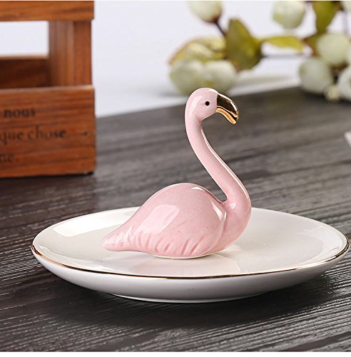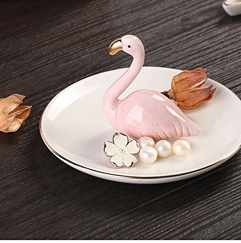 Ceramic Flamingos Jewelry Display Holder with White Tray for Rings Bracelets Earrings Necklace Collection, Sold by Chris.W(White and Pink)