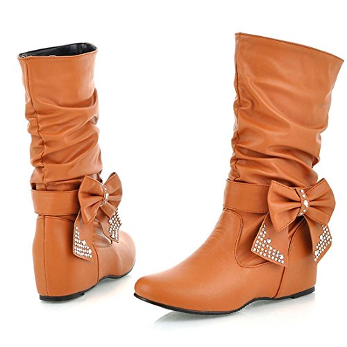 Binding : Apparel Product Description Inornever offers a wide array of styles including heels,wedges,flats,shoes,sandals,booties and boots. Below it will help us choose right size for shoes,compare the chart size with your feet length carefully before ordering.Thank you! Size Chart(cm): Women US5=Foot Length 215-220mm Women US5.5=Foot Length 220-225mm Women US6=Foot Length 225-230mm Women US6.5=Foot Length 230-235mm Women US7=Foot Length 235-240mm Women US7.5=Foot Length 240-245mm Women US8=Foot Length 245-250mm Women US8.5=Foot Length 250-255mm Women US9=Foot Length 255-260mm Women US9.5=Foot Length 260-265mm Women US10=Foot Length 265-270mm This style can be for just about any outfit with designs to help accentuate your legs and highlight your creative and fashionable look! These Inornever Women's Sweet Slouchy Flat Boots Increased Within Mid Calf PU Knight Boots with Bows are exactly what every fashionista is looking for. Perfect for all day wear,dressy or casual! We love animals as much as you do!No animals were hurt during the production of these shoes.They are made with 100% vegan materials from top to sole are all from man made materials.We only work with and carry manufacturers or brands that are very environmentally conscious! 0