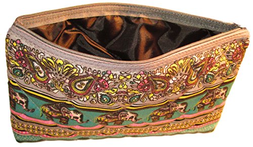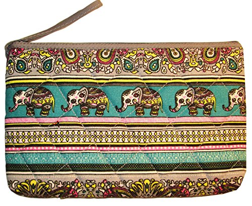 - Cute Canvas Boho Cosmetic Bag Green Elephant Floral Makeup Bags Handmade
