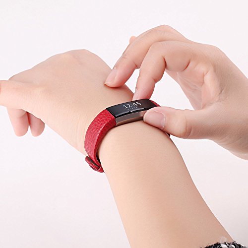 For Fitbit Alta HR / Alta Bands, Greatgo Leather Adjustable Replacement Wristband Accessory for Fitbit Alta HR / Alta Smart Fitness Tracker, Red