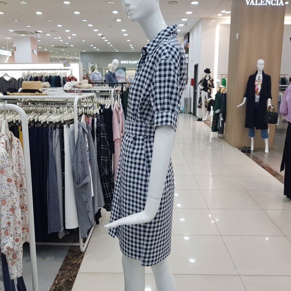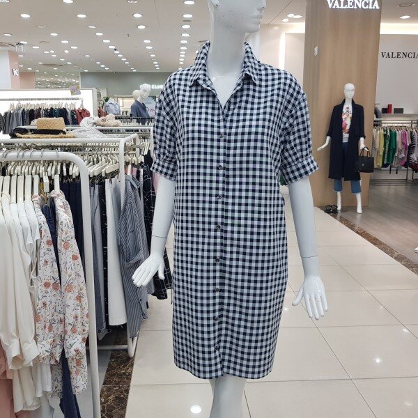 시원하고 구김안가는원단의 큰체크가 포인트인 셔츠형 일자박시원피스입니다.
