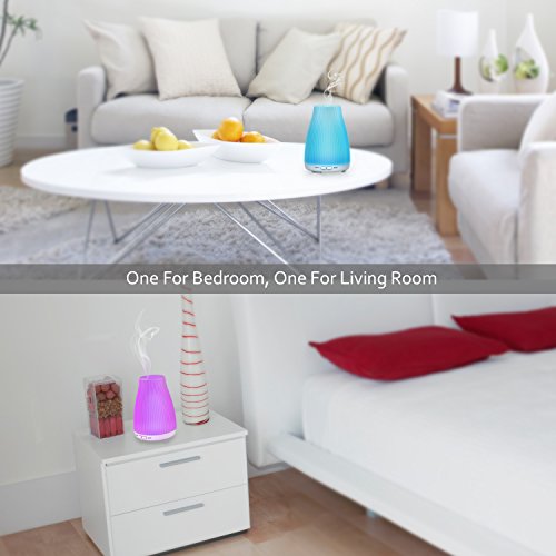 ESSENTIAL OIL ULTRASONIC AROMA DIFFUSER - BAXIA TECHNOLOGY 100ML COOL MIST HUMIDIFIER WITH 8 COLOR LED MOOD LIGHTS FOR OFFICE AND BEDROOM(2-PACK)