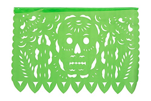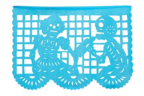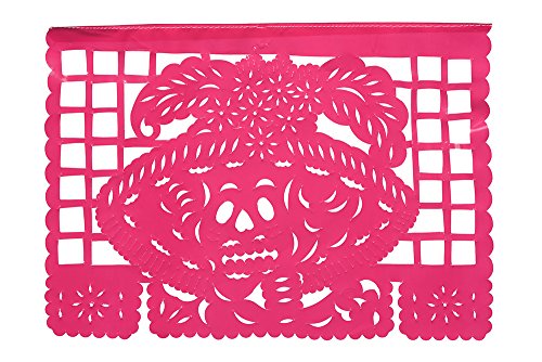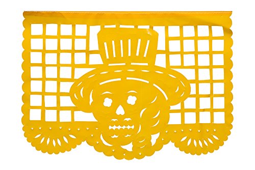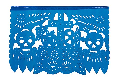 DIA DE LOS MUERTOS: This beautiful high quality Medium Size Plastic Papel Picado for Day of the Dead or Dia De Los Muertos is composed of 12 Medium Size Plastic Panels that hang to be over 16 feet long.