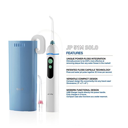Jetpik JP51M- SOLO – Rechargeable Portable Power Water Flosser with Patented pulsating Floss Technology and Cordless Dental Water Jet Cleaning for...