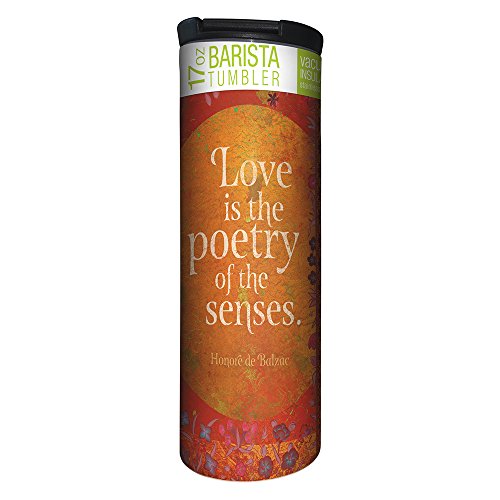 Tree-Free Greetings Love is Poetry Vacuum Insulated Travel Coffee Tumbler, 17 Ounce Stainless Steel Mug, Inspirational Balzac Quote Gift (BT21720)