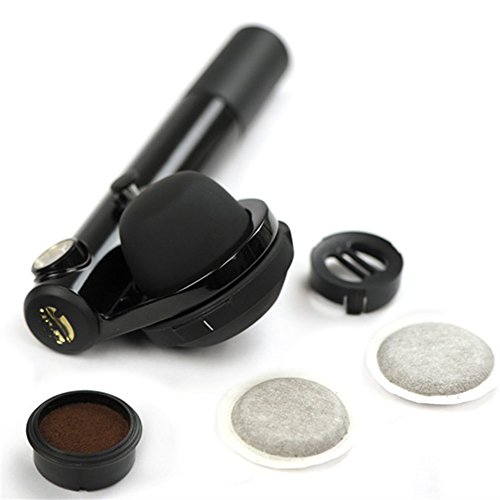 -. Feature : サイズ:<本体>=10×22×7(cm)、<ウォータータンク容量>=50cc、<個装箱サイズ>=9.6×25×12.2(cm) / 本体重量:500g / 素材・材質:アルミニウム、ポリイミド樹脂、ポリアセタール樹脂、ポリアミド樹脂、シリコーンゴム、他 / 生産国:中国 / 内容:本体、予備用ラバーリング(抽出フィルター)×3、専用タンパー(キャップ型)×1 / 最大圧力:16bar、使用環境:気温5℃~50℃/高度0m~3000m / 同梱書類:取扱説明書、保証書:あり(取扱説明書に添付)、保証期間:<本体>2年間 / カフェポッド(ESE規格44mm対応)及びコーヒー粉対応