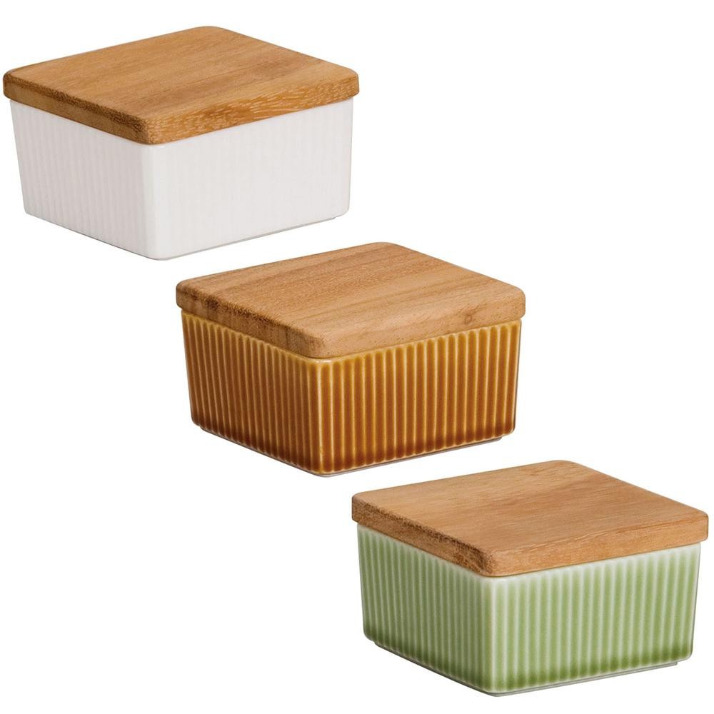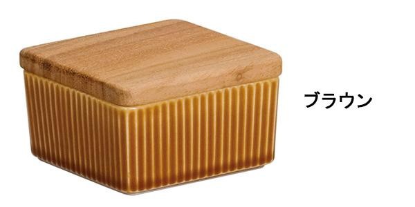 | 天然木の蓋と、しのぎ模様の陶器の組み合わせが可愛らしいバターケースです。バターのおいしさを長く楽しめ、どんな食卓にもなじむシンプルなデザインです。 |