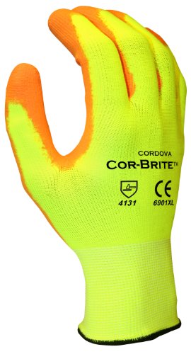 Cordova Safety Products 6901M Hi-Viz Yellow Polyester Gloves with Orange PU Coating, Medium