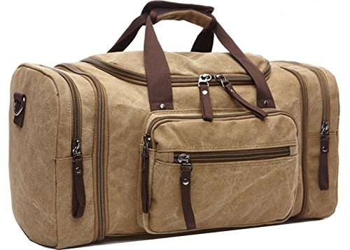 -. Title : PackBags Duffel Bags Unisex Large Canvas Leather Travel Bag