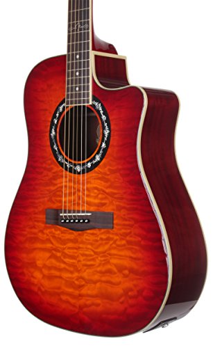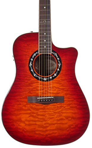 - Feature : Limited Edition Cherry Burst on a Quilted Maple Top and Laminated Mahogany Back and Sides / Dreadnought Cutaway body with Electronics / Fishman® Isys III System with Active Onboard Preamp and Tuner / Built-In Chromatic Tuner with On/Off Switch, Volume, Bass, Mid, Treble / Quartersawn Scalloped "X" Bracing