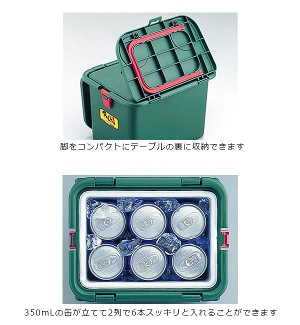 fk094igrjs脚をテーブルの裏にコンパクトに収納できます サイズ (約)495×260×170mm、収納時:202×260×170mm 個装サイズ:21×27×18cm 重量 約620g 個装重量:760g 素材・材質 本体・蓋・テーブル部・バックル・ハンドル・脚:ポリプロピレン 断熱材:発泡スチロール 仕様 容量:約3.8L 収納目安:350mLの缶6本 製造国 日本 クーラーボックスが便利なテーブルに早変わり 脚をテーブルの裏にコンパクトに収納できます
