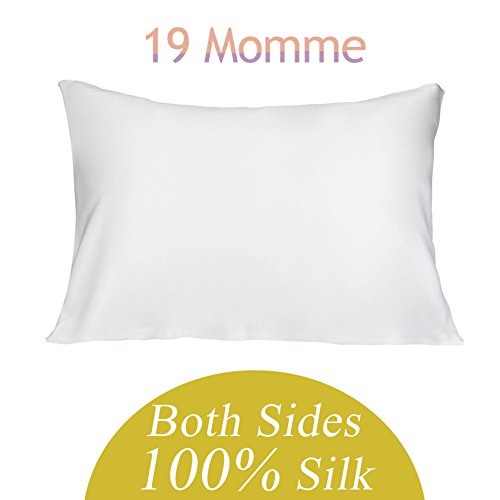 LULUSILK 19 Momme 100% Pure Mulberry Silk Pillowcase Both Sides Natural Silk Pillow Cover for Hair and Skin Anti Wrinkle Zipper Closure Queen Size Ivory/Natural White 1pc