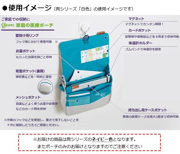 fk094igrjs診察券や保険証、お薬手帳に加え、もらったお薬などもひとまとめに収納できます壁かけ用リング付きなので、フック等にかければ壁にかけて使用することができます サイズ W215×D60×H165mm 個装サイズ:17×23×7cm 重量 個装重量:176g 素材・材質 ポリエステル 製造国 中国 壁にかけて使える収納ポーチ☆ ※壁にかける際は、市販のフック等を使用し、重さで落下しないことを十分に確認したうえでご使用ください 診察券や保険証、お薬手帳に加え、もらったお薬などもひとまとめに収納できます壁かけ用リング付きなので、フック等にかければ壁にかけて使用することができます