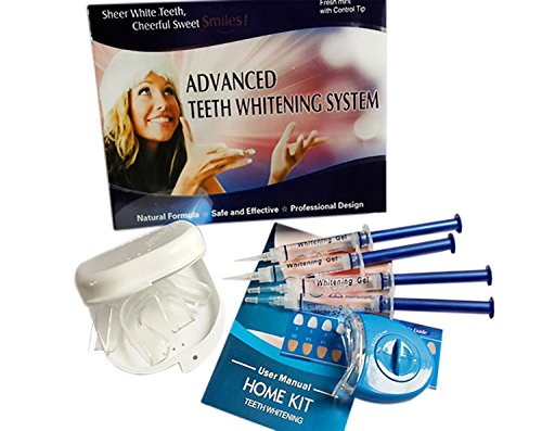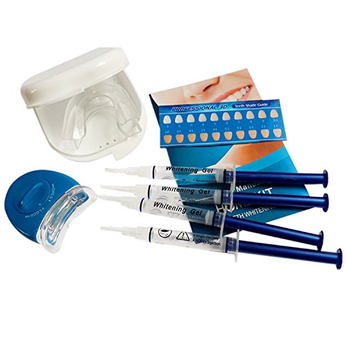 -. Feature : • Professional teeth whitening kit, containing the dental-grade ingredient Carbamide Peroxide in the gel, for beautiful results / • In just a few simple-to-do treatments you can removes years' worth of stains for a white smile with our whitening kit / • The advanced ingredients deliver dental-grade results, using the same technique you'll find at the dentist, but from the comfort and convenience of your home. This method and formula is used by hundreds of dentists around the country, but customized for easy-to-use at home application, at a fraction of the cost you'd expect at the dentist. / • Includes 1 x teeth whitening light, 1 x mouth tray, 3 x teeth whitening gel, whitening shade guide and an instruction manual / • By using a cold light whitening technique, this kit quickly and safely bleaches your teeth without bringing any harm to teeth and oral mucous membrane. Rapid, safe and easy-to-use, this is the ideal whitening kit with the most effective outcome.