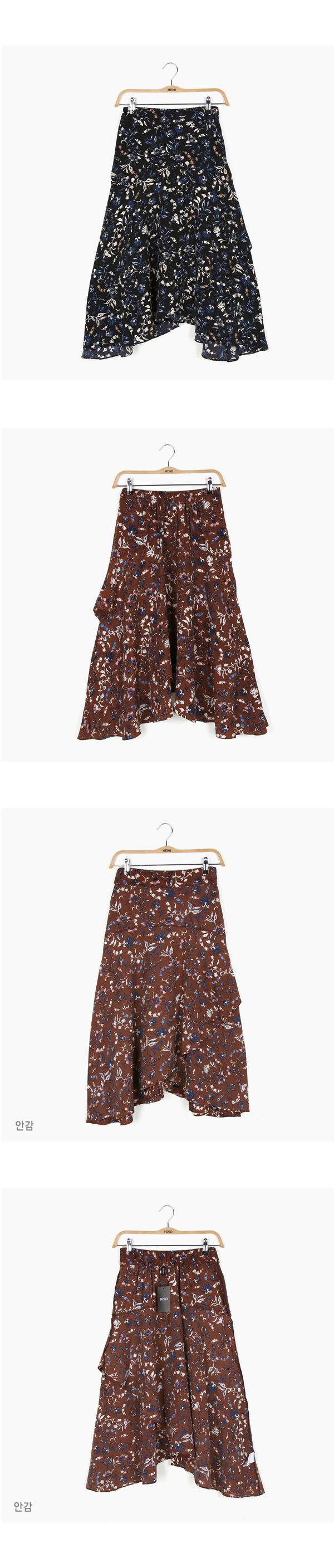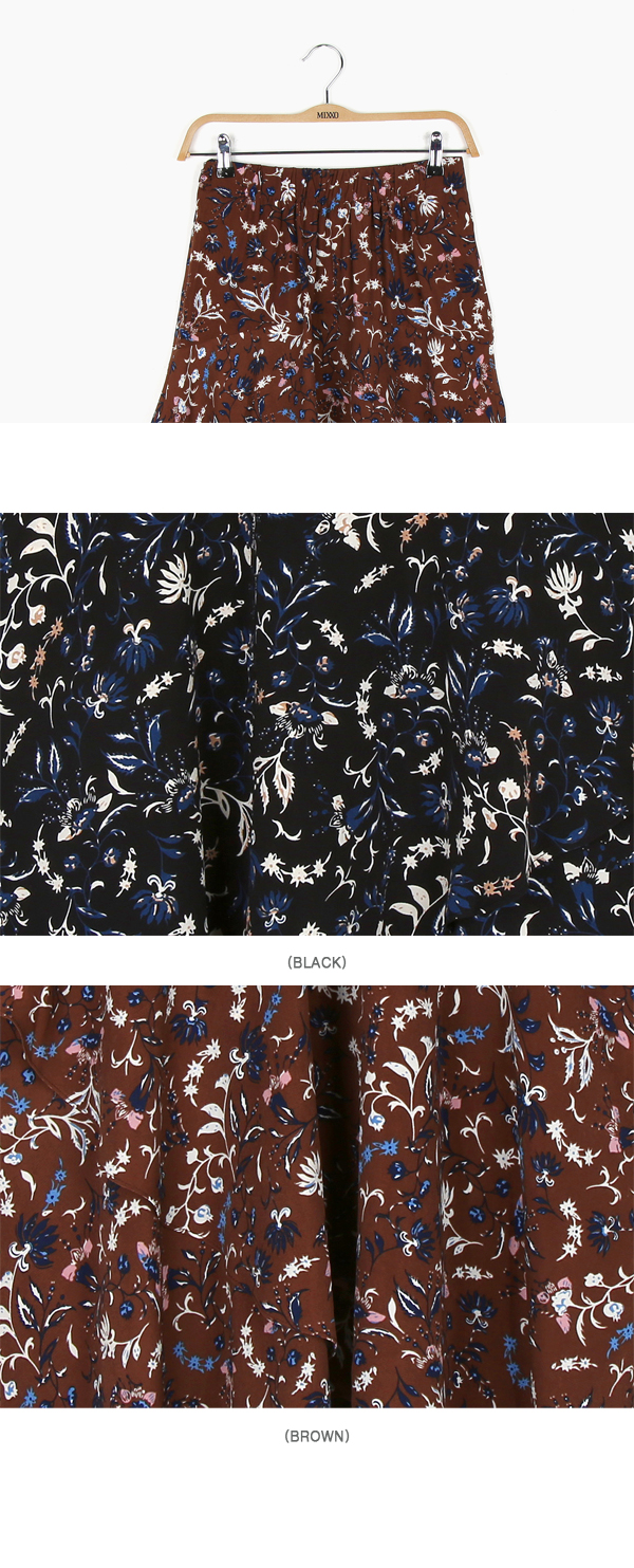 - 백 밴딩으로 편안하게 착용 가능한 플라워 패턴의 미디스커트입니다.