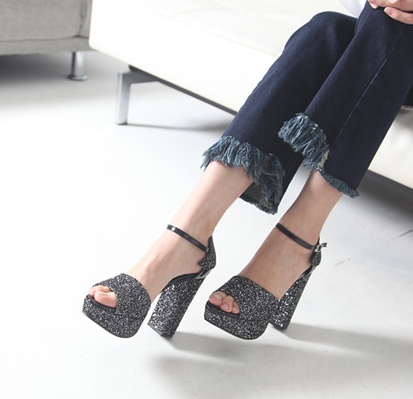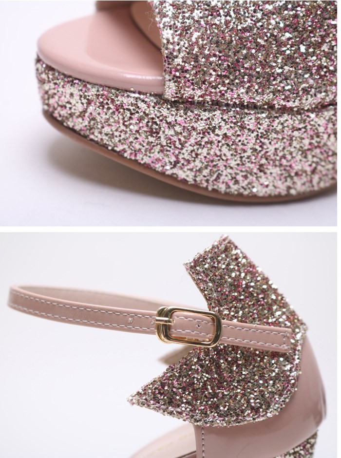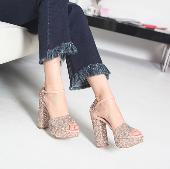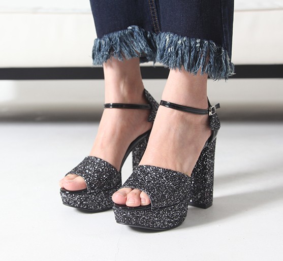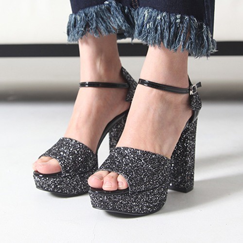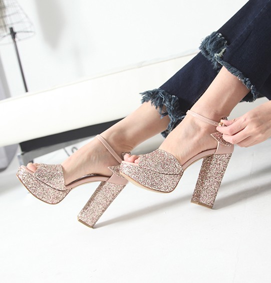商品名:サンダル レディース チャンキーヒール アンクルストラップ 太ヒール キラキラ プラットフォーム 2017 春 ファッション 靴 婦人靴