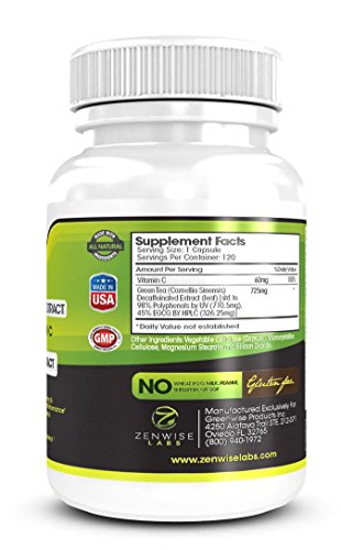 - Feature : An Advanced Supplement for Enhanced Results - Our Advanced Green Tea Extract capsules are formulated to help promote weight loss, cholesterol reduction and healthier living in men and women. / The All-Natural Power of Green Tea - 120 capsules that contain our specialized caffeine-free Green Tea which acts as a natural fat burner to help optimize your physique and well-being. / A Boost of Vitamin C - Our diet pills also feature Vitamin C, which works in tandem with the polyphenols of the Green Tea to increase antioxidant protection against harmful free radicals that can attack the immune system. / A Supplement You Can Trust - Our powerful supplements are crafted in a cutting-edge FDA-registered facility that is NSF and GMP certified, and all of our products are manufactured in the USA. / Manufacturer Guarantee - We offer a 100% no-hassle Manufacturer Guarantee for all of our products. If you do not get the results that you were looking for, simply let us know and we will provide you with a full refund.