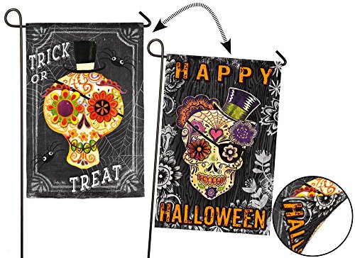 -. Title : Evergreen Suede Sugar Skulls Double-Sided Garden Flag, 12.5 x 18 inches