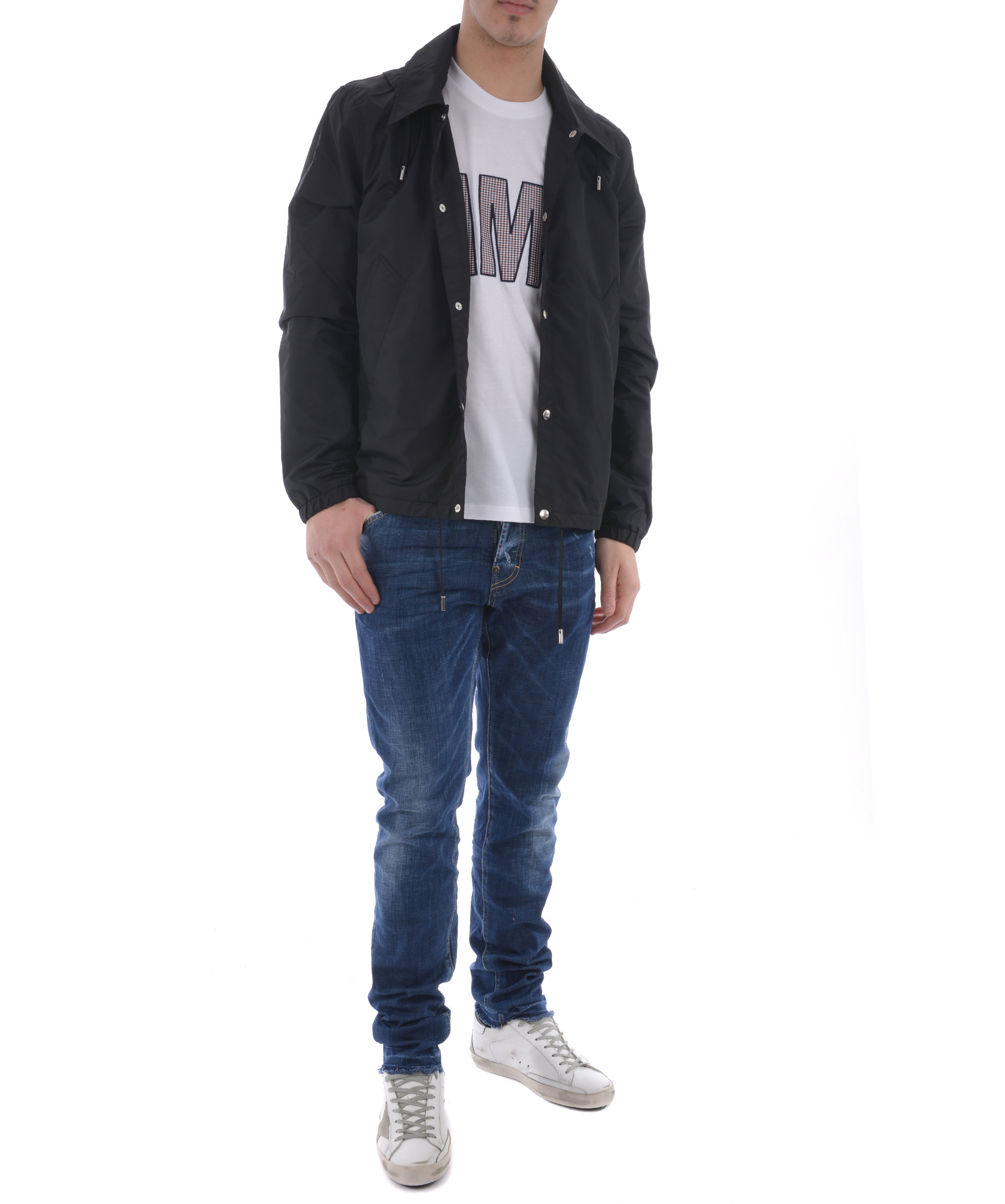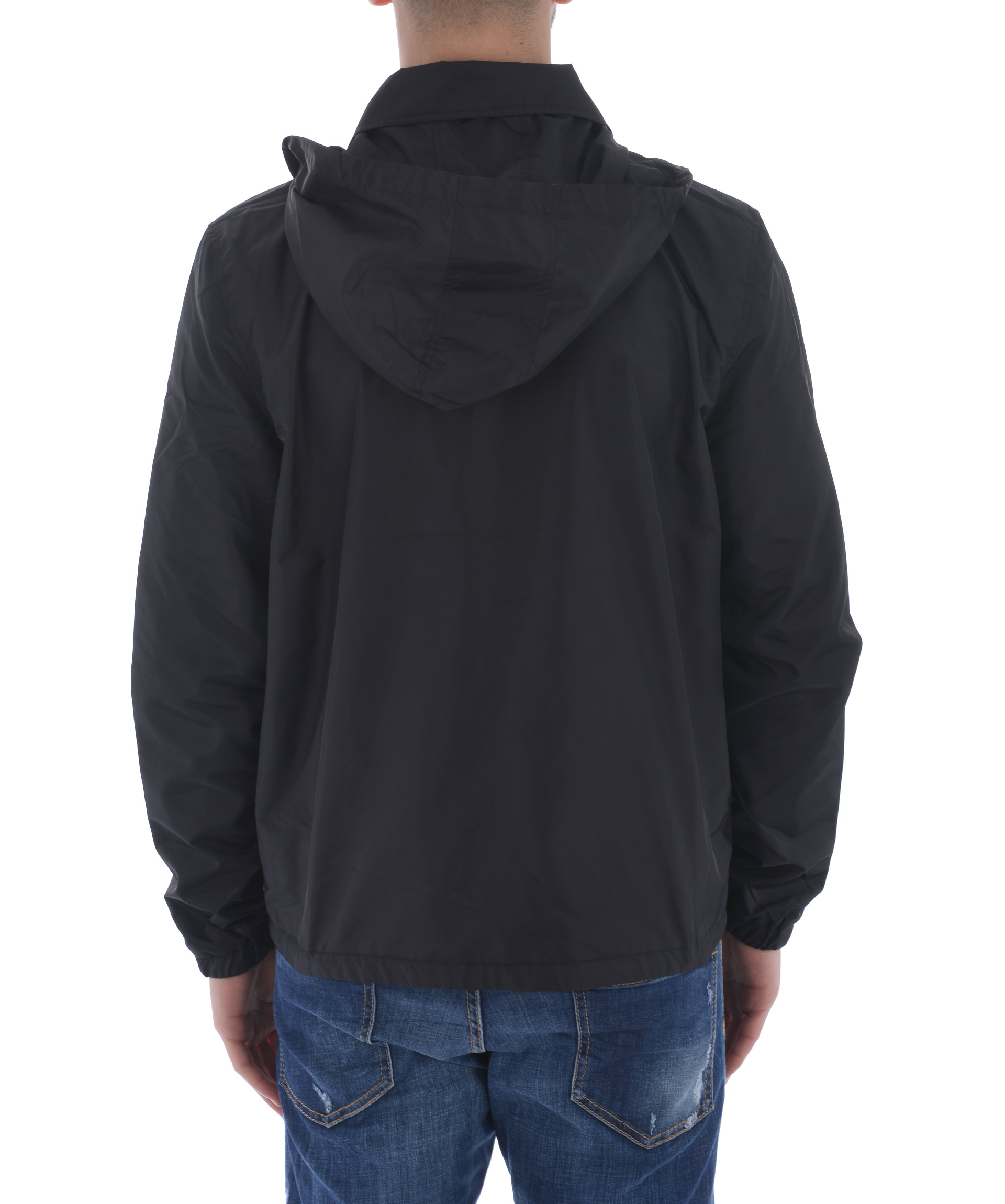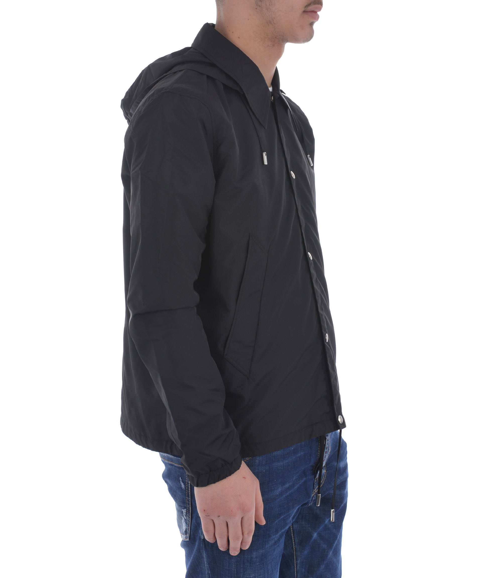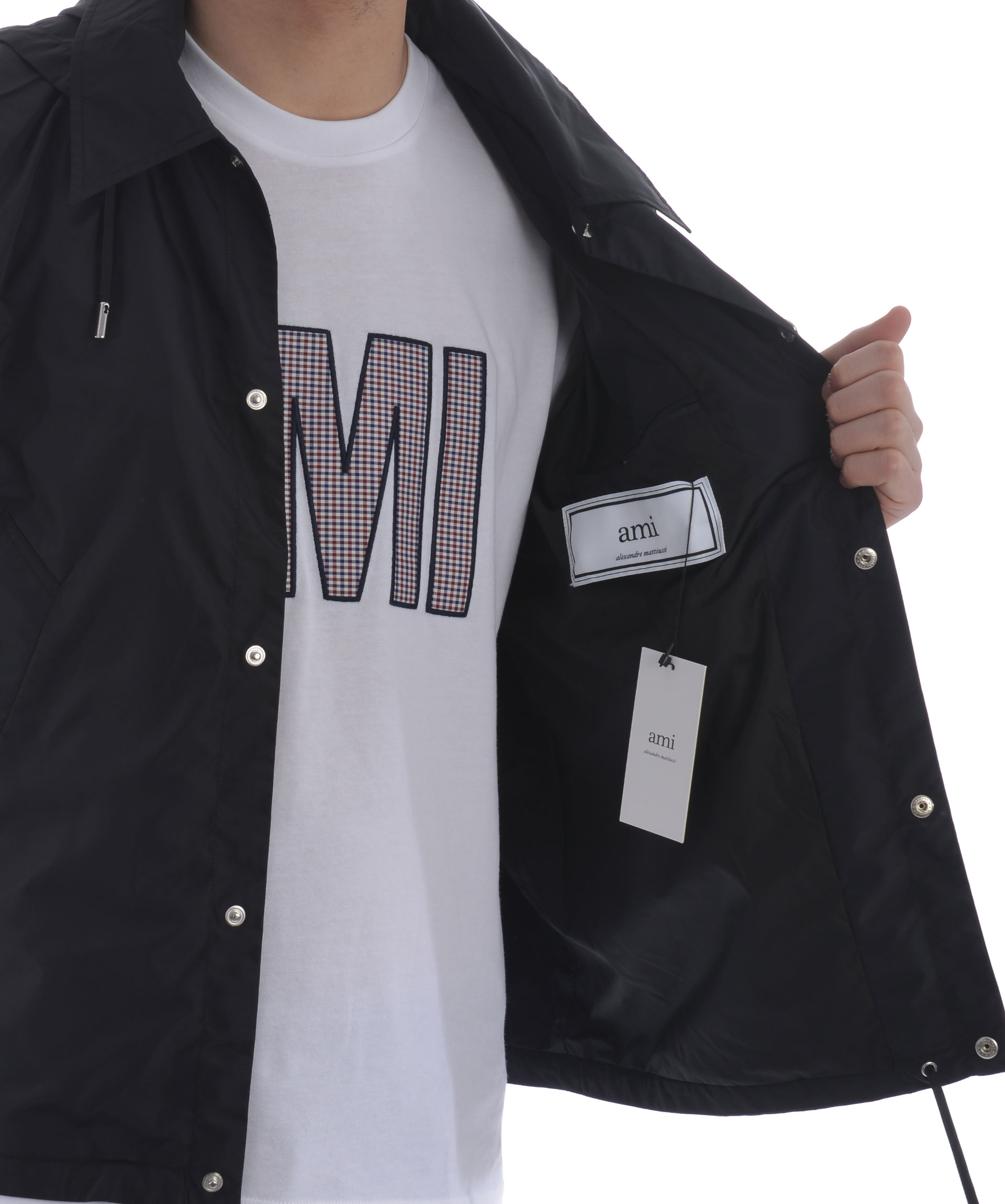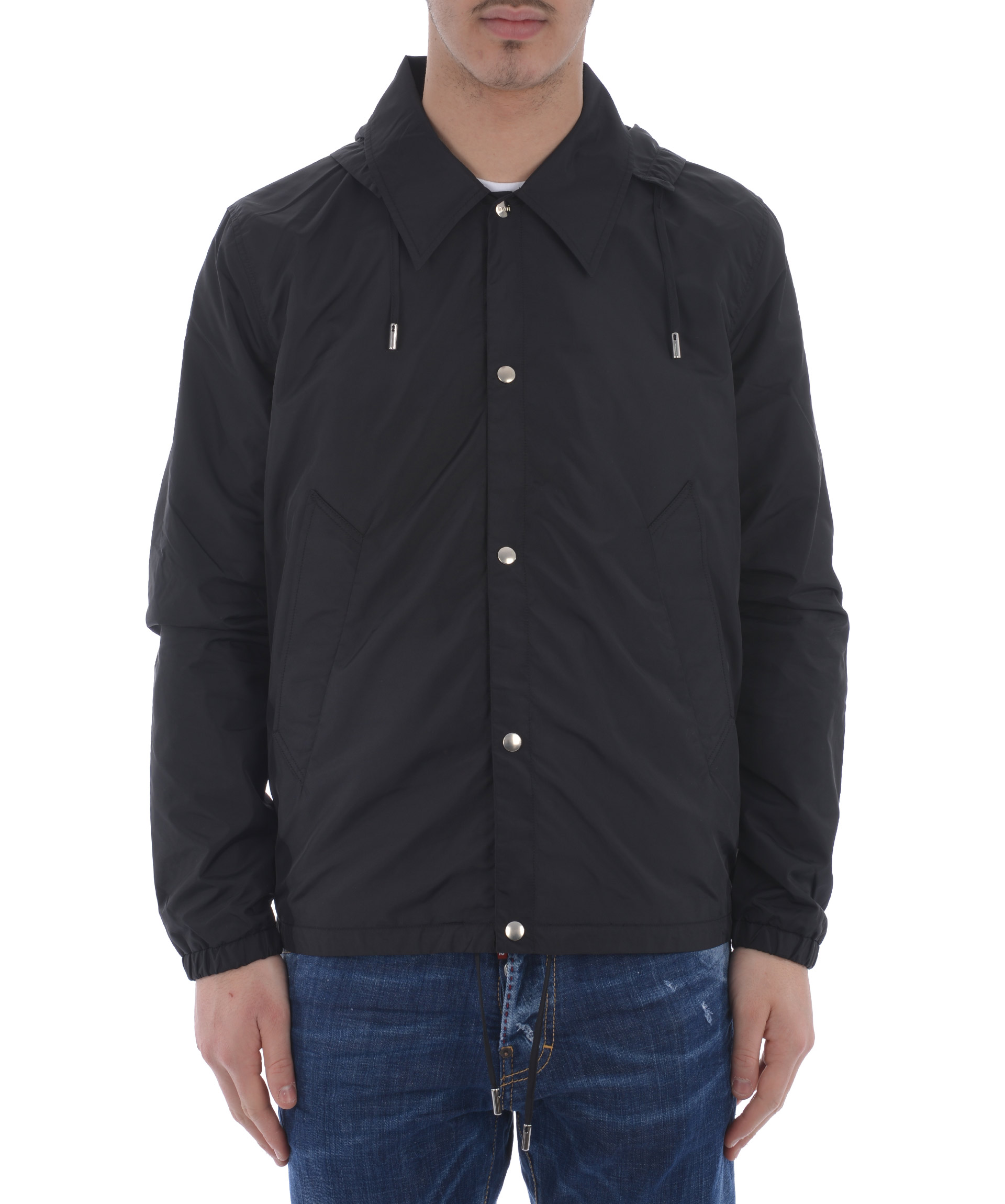 Wind Breaker from AMI Alexandre Mattiussi: Black Wind Breaker with long sleeves, front pockets, elasticated cuffs, straight hem, hood with drawstring fastening and front snap closures.