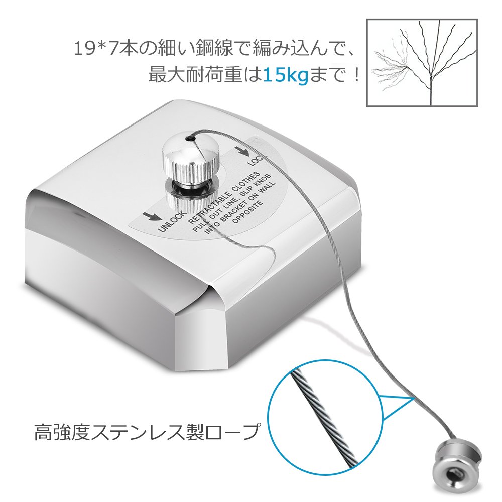 ◆錆がない鋼材◆:耐食性、溶接性、機械的性質が良好なSUS304ステンレス鋼材を採用、サビに強い物干しロープです。サビなどで洗濯物を汚すの心配が要らない。