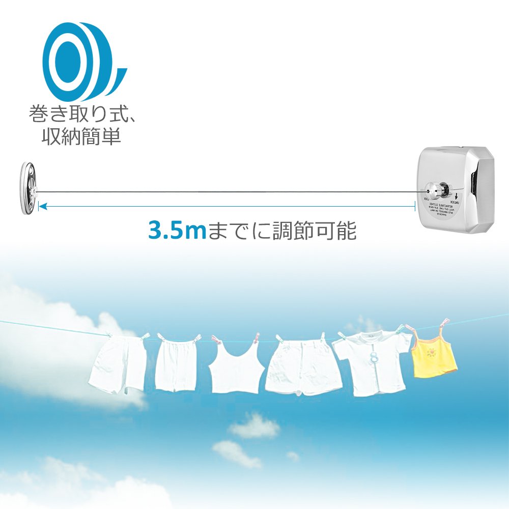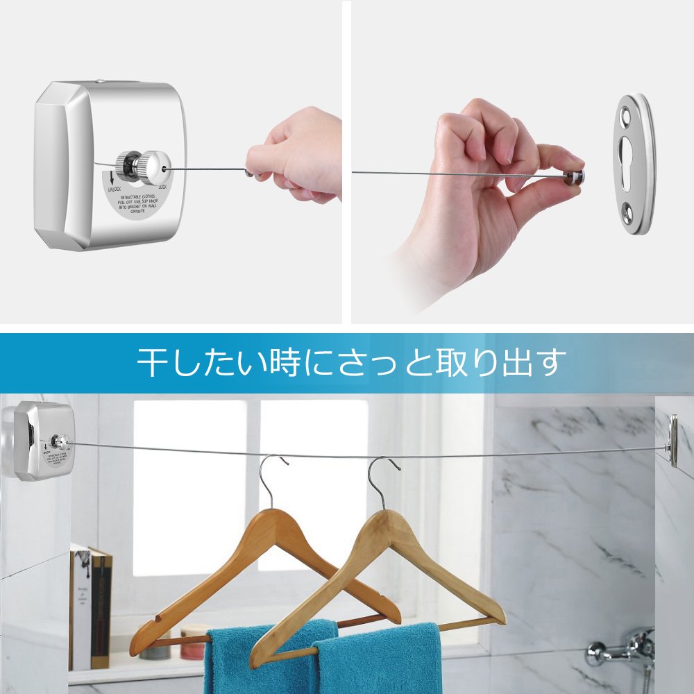 ◆収納簡単◆:伸縮式なので、必要な時だけワイヤーを伸ばして手軽に洗濯物を干します。使わない時は折りたたんで収納するのでお部屋の雰囲気を損ねることもありません。